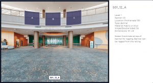 View the location of each smaller banner – one on the left and one on the right: https://brandview.shepardes.com/long-beach-convention-center?show=6628a0a36d292a3c927ddc4d